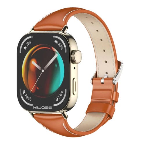 Correa de Cuero Genuino Delgada Mijobs para Huawei Watch Fit3 (Naranja y Dorado Claro)