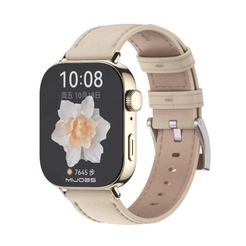 Correa de Cuero Genuino Mijobs para Huawei Watch Fit3 (Beige Dorado Claro)