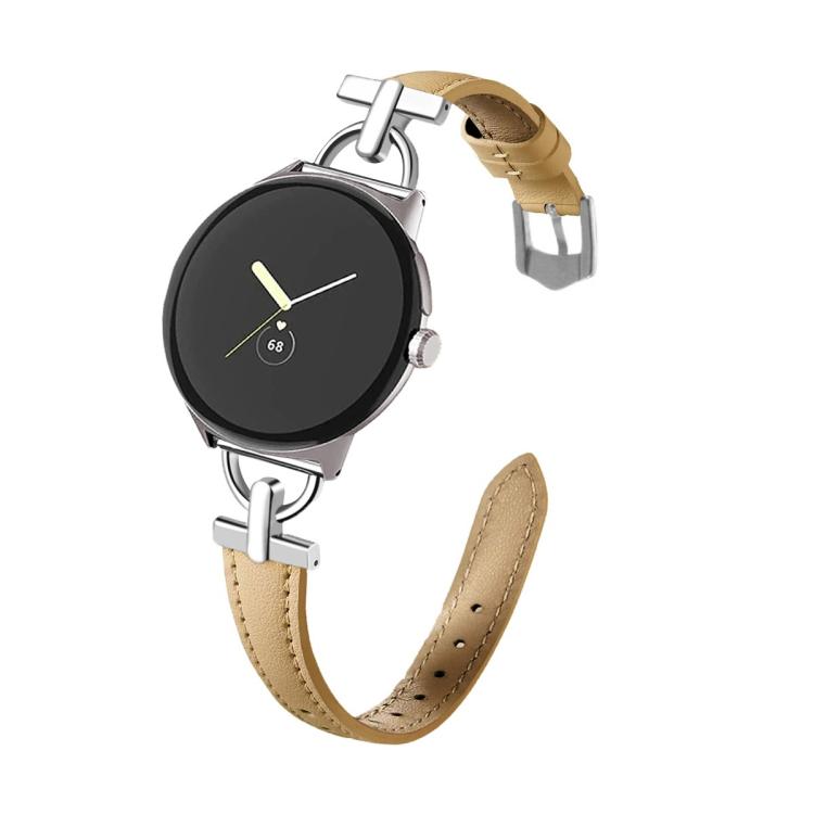 Correa de cuero metálica pequeña en forma de D de 41 mm para Google Pixel Watch 4 / 3 / 2 / 1 (caqui)