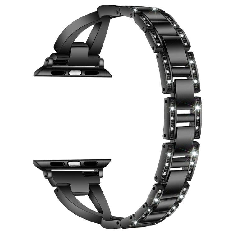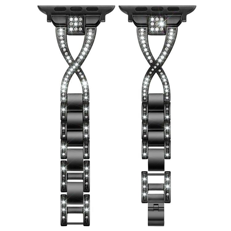 Correa de metal con diamantes de una sola fila en forma de X para Apple Watch de 42, 44, 45, 46 y 49 mm (negro)