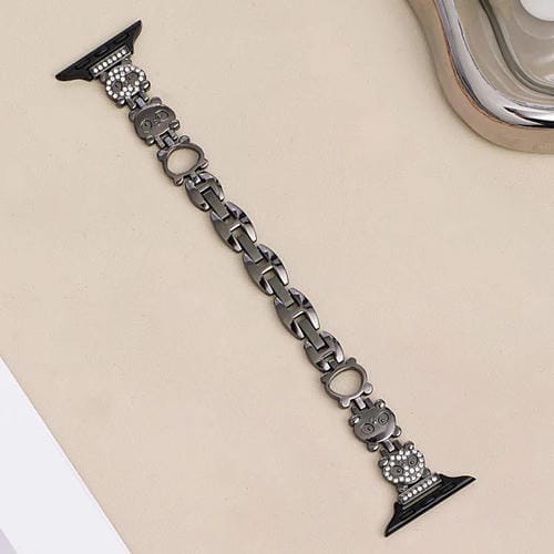 Correa de metal con diamantes en forma de panda rojo para Apple Watch 38/40/41/S11 de 42 mm (negro)