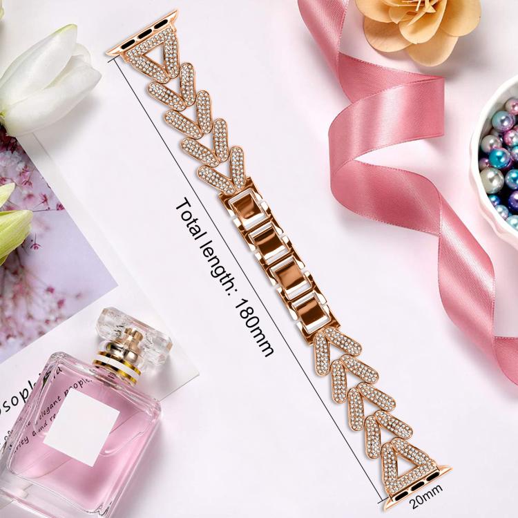 Correa de metal con diamantes pequeños y retorcidos xDfind para Apple Watch 38/40/41/S10 de 42 mm y 20 mm (oro rosa)