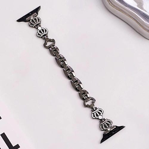 Correa de metal con diamantes y cadena de corona para Apple Watch de 42, 44, 45, 46 y 49 mm (negro)