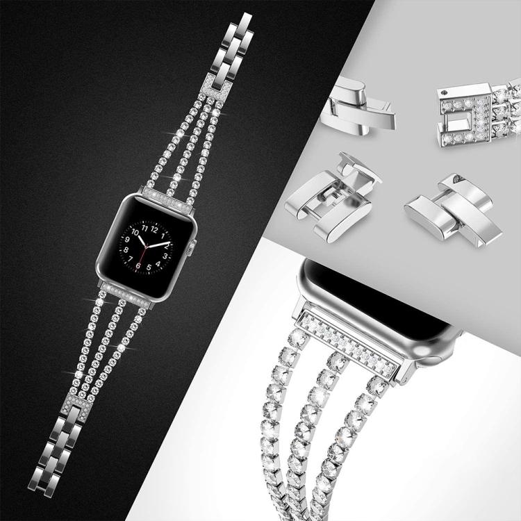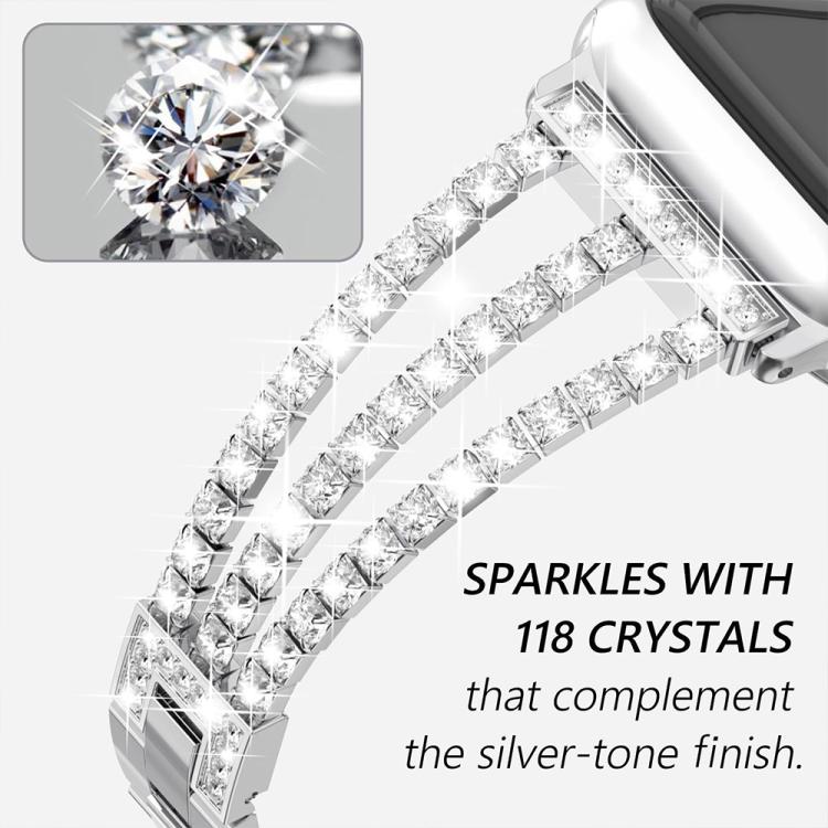 Correa de metal con tres diamantes xDfind para Apple Watch de 42, 44, 45, 46 y 49 mm (plateada)