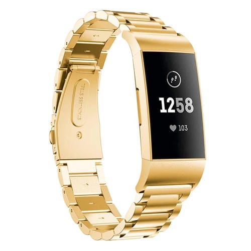 Correa de metal de liberación rápida con tres cuentas para Fitbit Charge 4/3 xDfind (dorada)