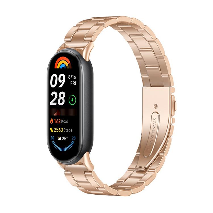 Correa de metal de liberación rápida con tres cuentas xDfind para Xiaomi Smart Band 10/9/8 NFC (oro rosa)