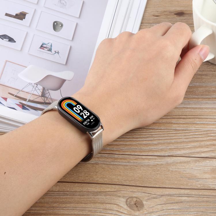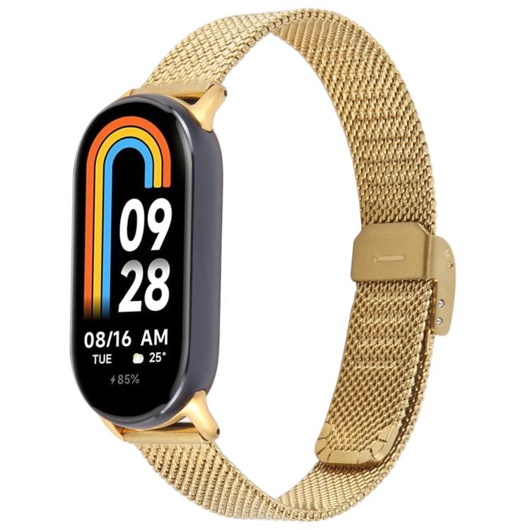 Correa de metal milanesa con hebilla integrada para Xiaomi Smart Band 9/8 (dorada)