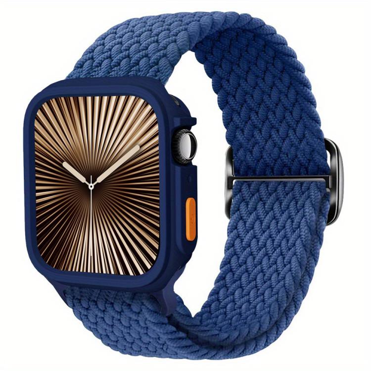 Correa de nailon con hebilla de escalera para Apple Watch Series 10/11 de 46 mm con funda de TPU (azul oscuro)