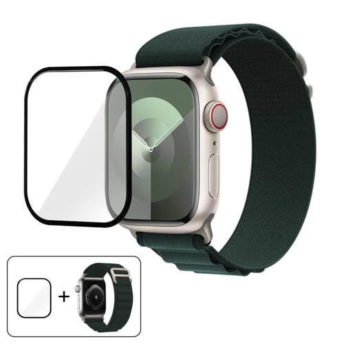 Correa de nailon con hebilla y película curva 3D para Apple Watch Series 44 mm (verde bosque)
