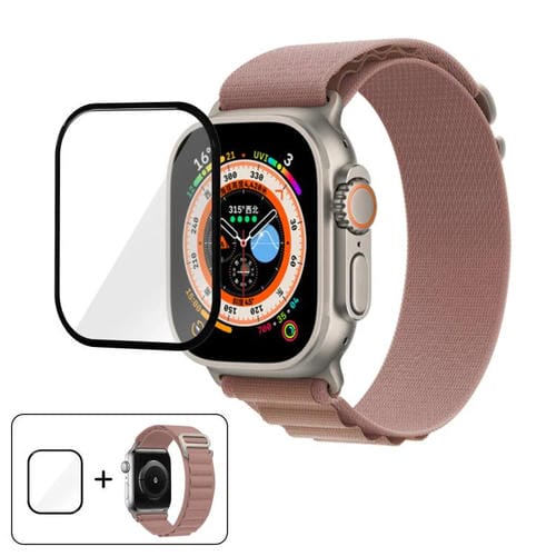 Correa de nailon con hebilla y película curva 3D para Apple Watch Ultra 2/1 de 49 mm (rosa)