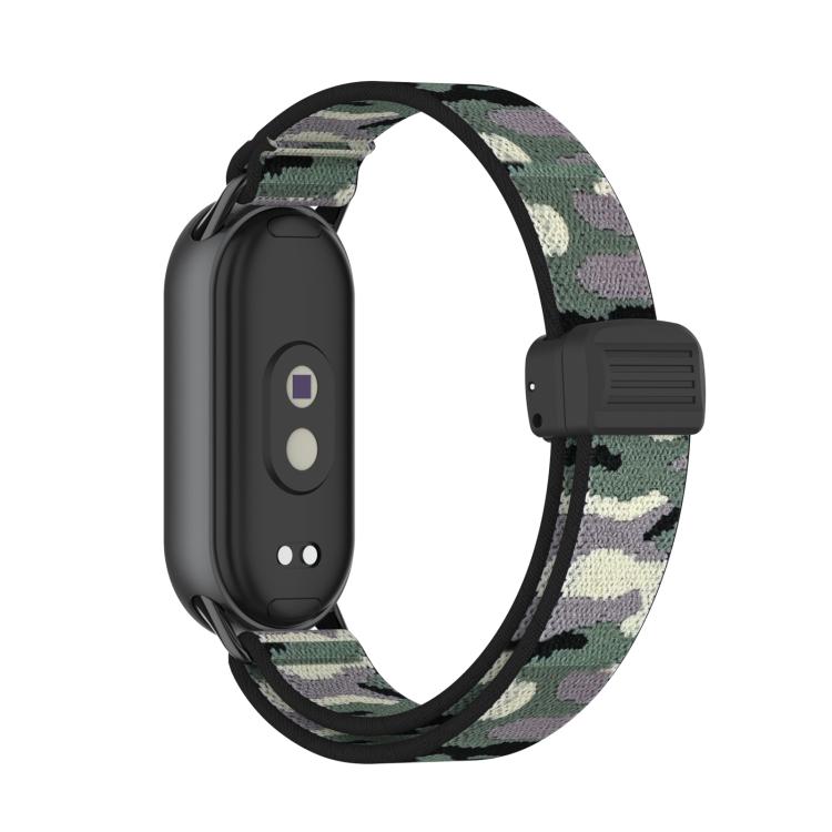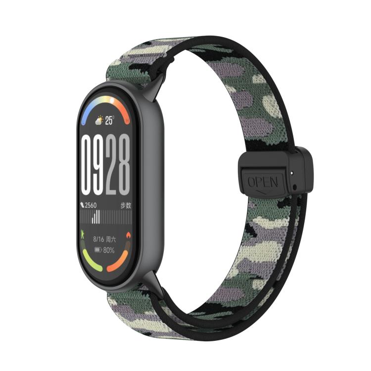 Correa de nailon elástica con hebilla magnética de plástico y cabeza de metal para Xiaomi Smart Band 10/9/8 (Camuflaje jungla)