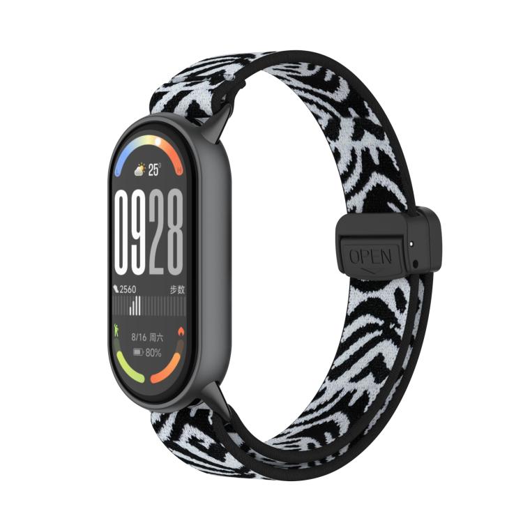 Correa de nailon elástica con hebilla magnética de plástico y cabeza de metal para Xiaomi Smart Band 10/9/8 (Snow Leopard)