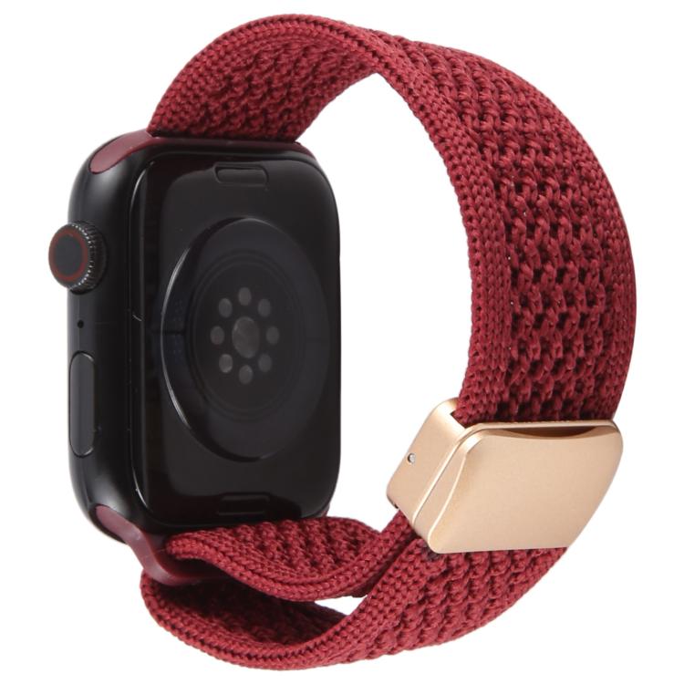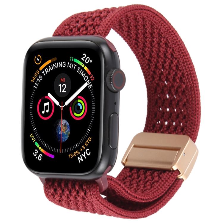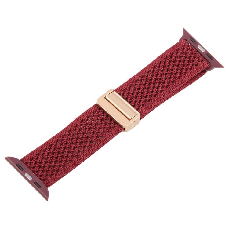 Correa de nailon transpirable con hebilla magnética para Apple Watch de 42 mm, 41 mm, 40 mm y 38 mm (rojo vino)