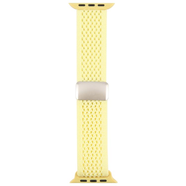 Correa de nailon transpirable con hebilla magnética para Apple Watch de 46 mm, 49 mm, 45 mm y 44 mm (amarillo claro)