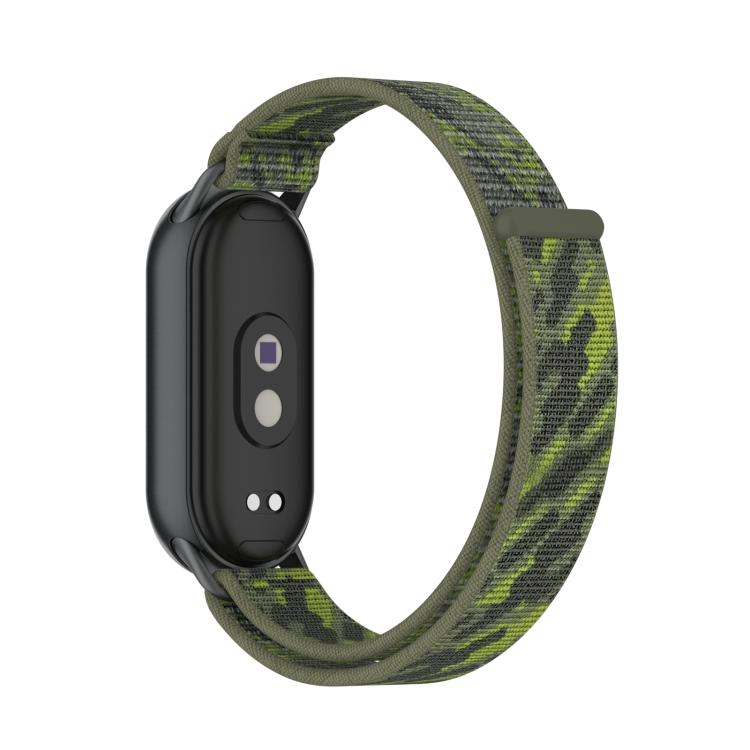 Correa de reloj con cierre de velcro integrado para Xiaomi Smart Band 10/9/8 (verde camuflaje)