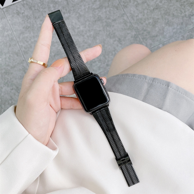 Correa de Reloj de Acero Doble Línea para Apple Watch Series 8 7 SE 6 5 4 3 2 1 (Negro)