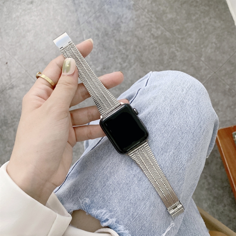 Correa de Reloj de Acero de Tres Líneas para Apple Watch Ultra 49mm / Serie 8 y 7 45mm / Se 2 y 6 y Se y 5 y 4 44mm / 3 y 2 y 1 42mm (Plata)