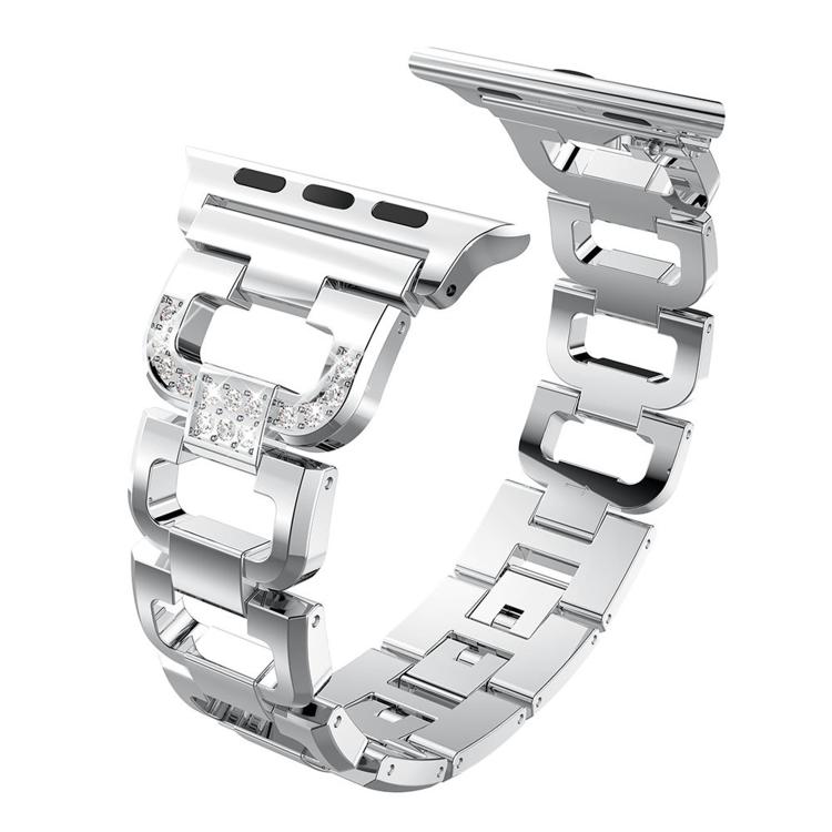 Correa de reloj de aleación de zinc con diamantes cuadrados para Apple Watch de 46 mm, 49 mm, 45 mm y 44 mm (plateada)