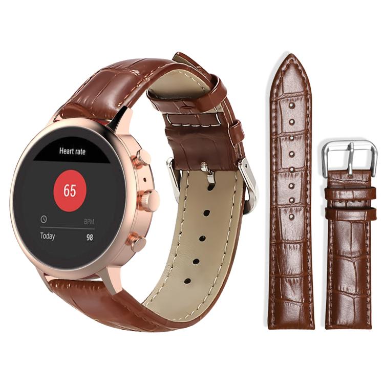 Correa de reloj de cuero con hebilla de pasador y textura de bambú de 18 mm para Fossil Sport/Charter HR (marrón oscuro)