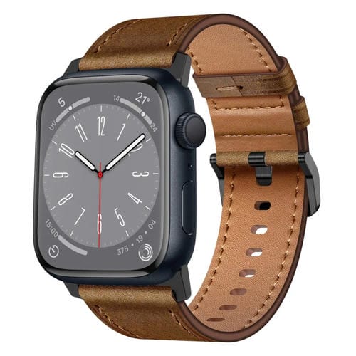 Correa de Reloj Cuero Grano Superior Wilderness para Apple Watch Se 44mm (Negro, Marrón Oscuro)