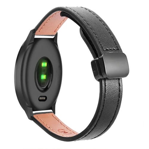 Correa de Reloj de Cuero Microfibra con Hebilla Magnética 20mm para Garmin Move Sport (Negra)