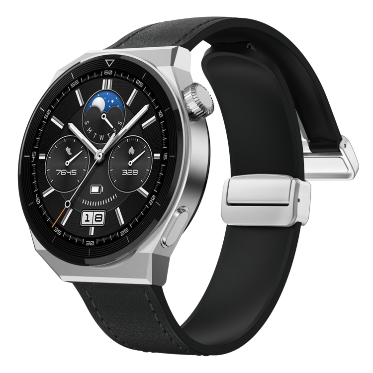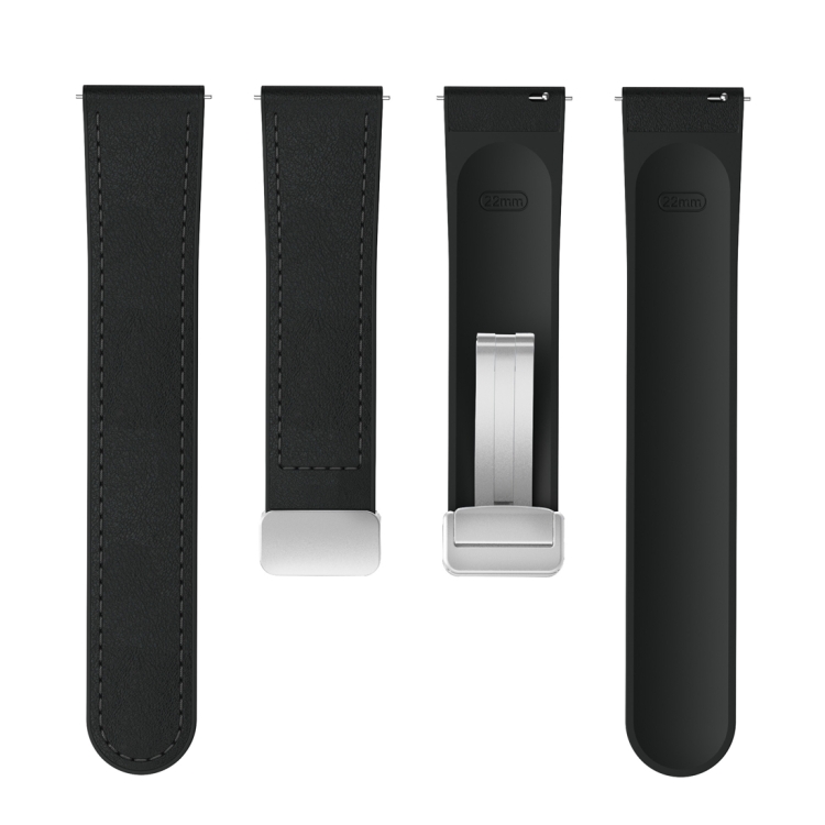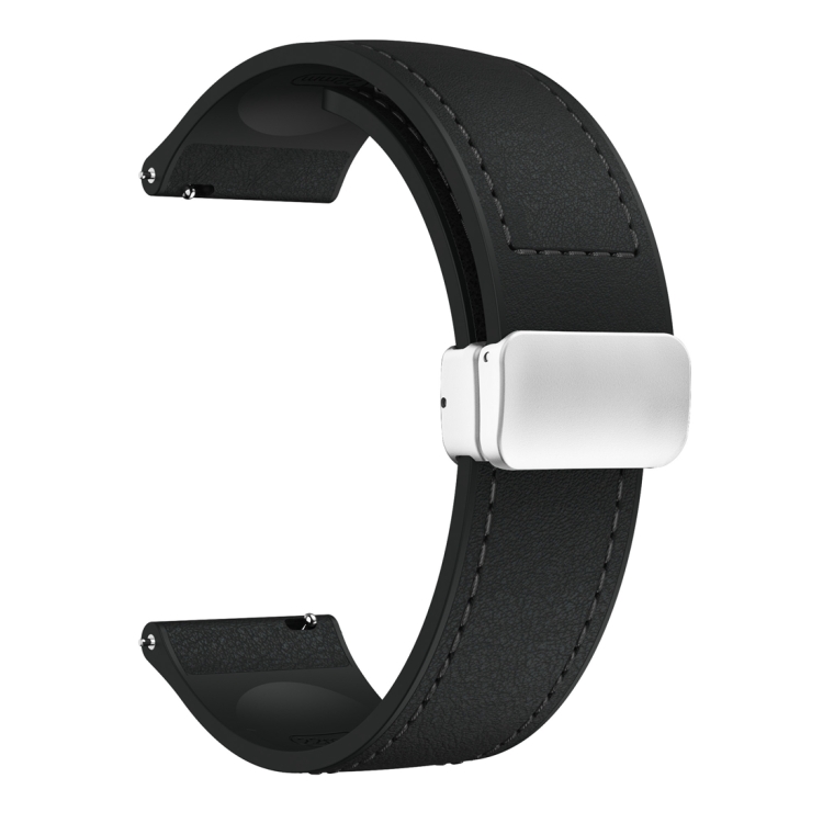 Correa de Reloj Cuero y Silicona 22mm con Hebilla Plateada Magnética (Negra)