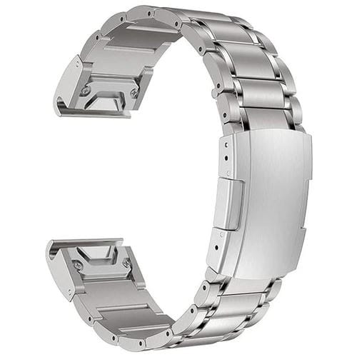 Correa de reloj de liberación rápida de metal con hebilla de presión de aleación de titanio de cinco cuentas para Garmin de 26 mm (plateada)