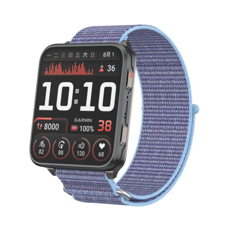 Correa de reloj de nailon con cierre de velcro y anillo metálico de dos secciones para Garmin Venu X1 (azul celeste)