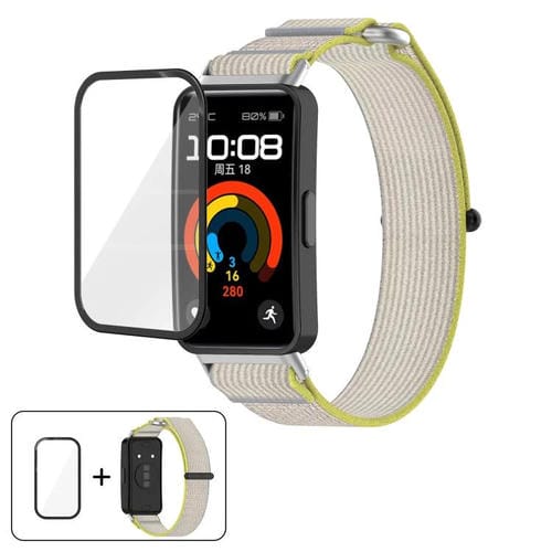 Correa de reloj de nailon con cierre de velcro y película curva 3D para Huawei Band 10/10 NFC Wild Path (amarillo y gris)
