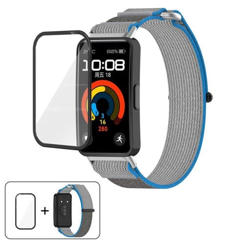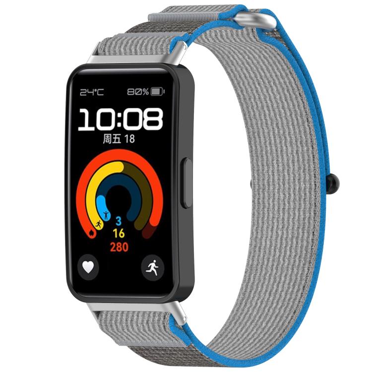 Correa de reloj de nailon con cierre de velcro y película curva 3D para Huawei Band 8/8 NFC Wild Path (azul grisáceo)