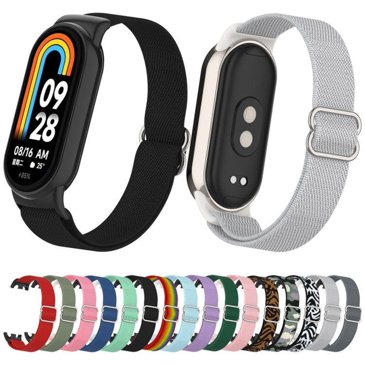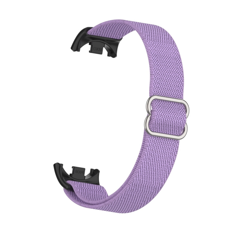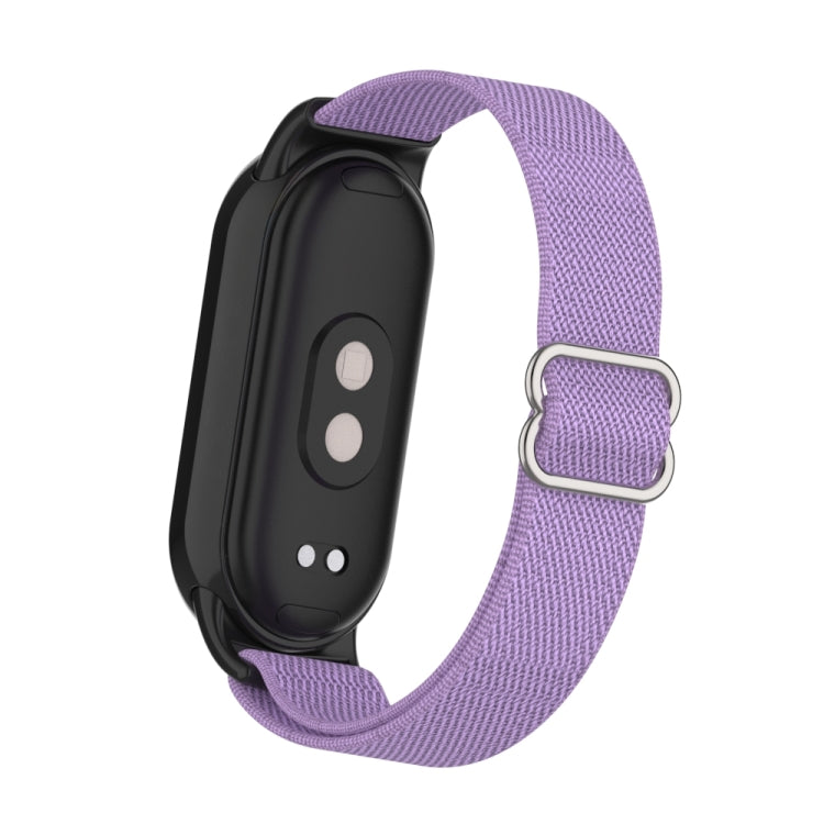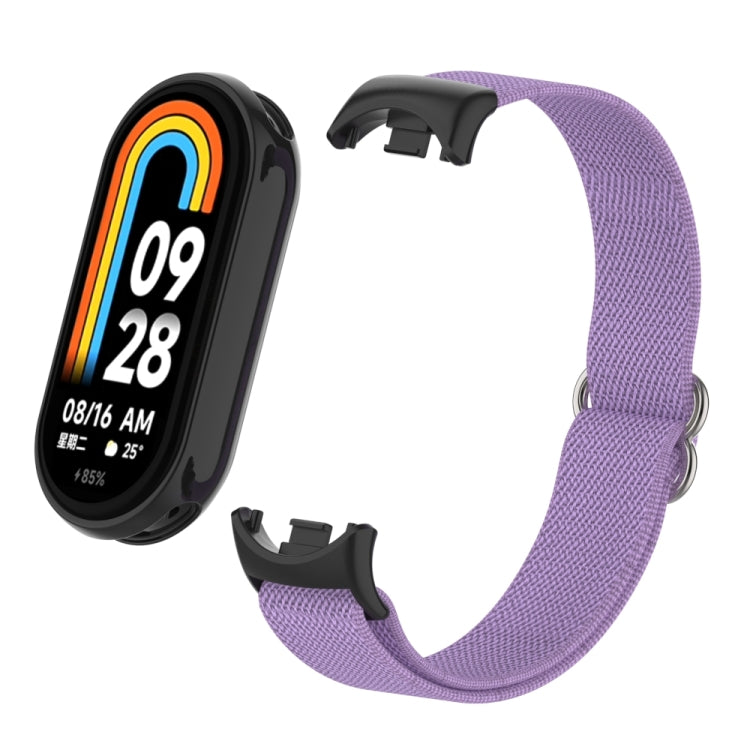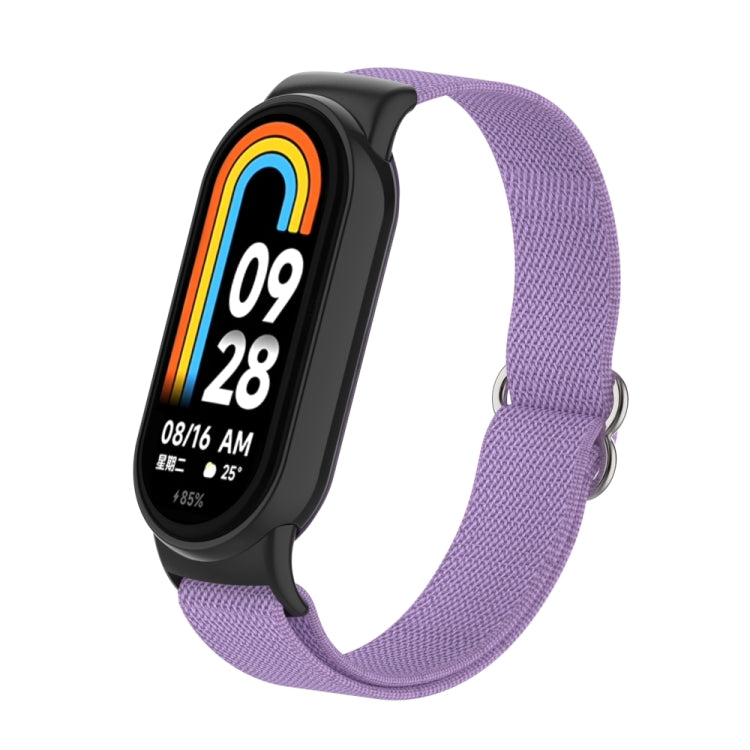 Correa de reloj de nailon elástica lisa con tapón de plástico para Xiaomi Smart Band 9/8 (lavanda)