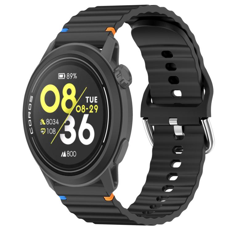 Correa de reloj de silicona de 22 mm con costuras onduladas para COROS Pace 3 (negra)