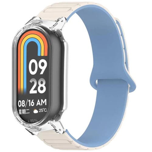 Correa de reloj de silicona magnética con forma de I para Xiaomi Mi Band 8/8 NFC PC Watch Frame (blanco, azul y transparente)