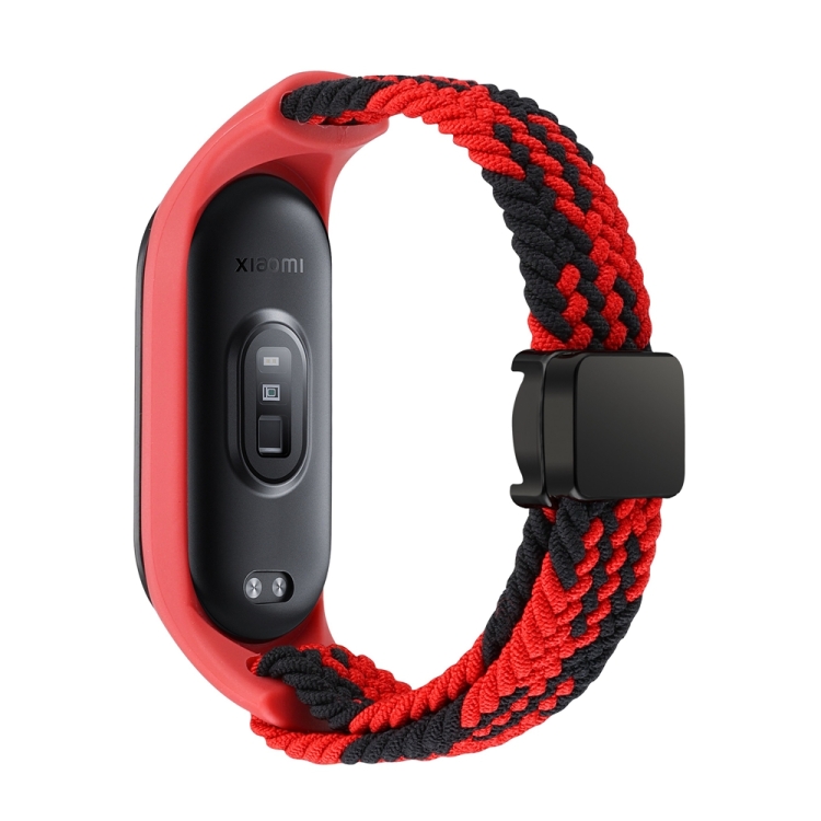 Correa de Reloj Xiaomi Mi Band 7/6/5/4/3 con Hebilla Magnética y Lazo Trenzado de Nailon (Rojo y Negro)