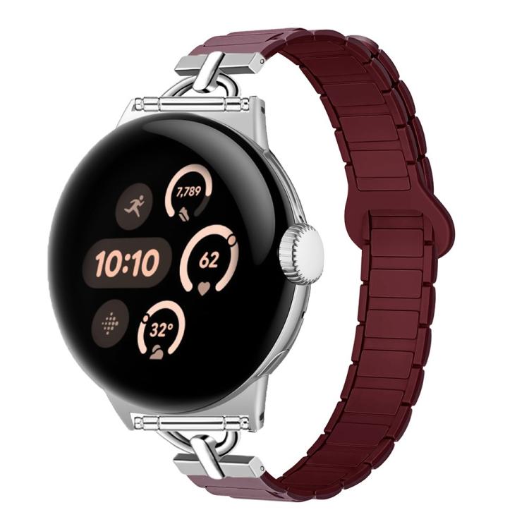 Correa de reloj magnética de silicona con tres cuentas en forma de D de 41 mm para Google Pixel Watch 4 / 3 / 2 / 1 (rojo vino púrpura ahumado)