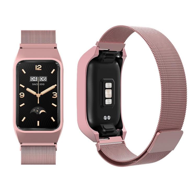 Correa de reloj magnética milanesa de acero inoxidable integrada para Xiaomi Mi Band 7 Pro (rosa)