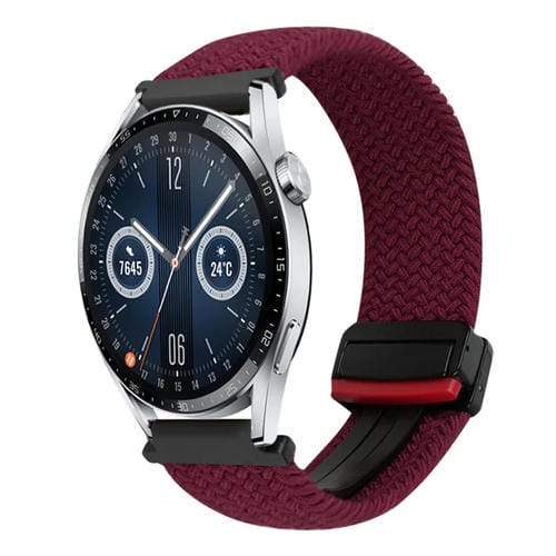 Correa de Reloj Trenzada Huawei Watch Gt 3 42mm 20mm Hebilla Magnética (Rojo Vino)