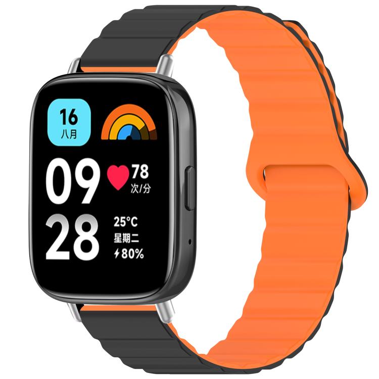 Correa de silicona brillante magnética xDfind Loop para Redmi Watch 3 Active/Watch 3 Lite (negro y naranja)