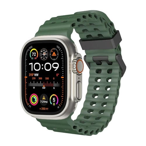 Correa de Silicona para Apple Watch Ultra 49mm con Dos Agujeros Diseño Océano (Verde Bosque)