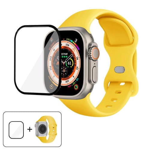 Correa de silicona con hebilla de mariposa y película curva 3D para Apple Watch Ultra 2/1 de 49 mm (amarilla)