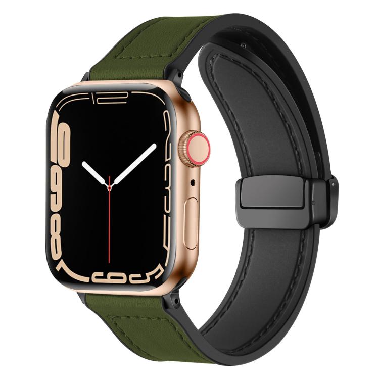 Correa de silicona con hebilla magnética para Apple Watch 38/40/41/S10 de 42 mm xDfind con diseño de caballo loco (verde militar)