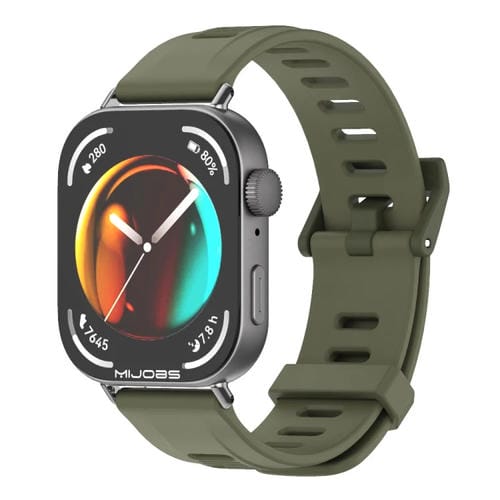 Correa de Silicona con Orificios Planos Mijobs para Huawei Watch Fit3 (Verde Militar y Negro)
