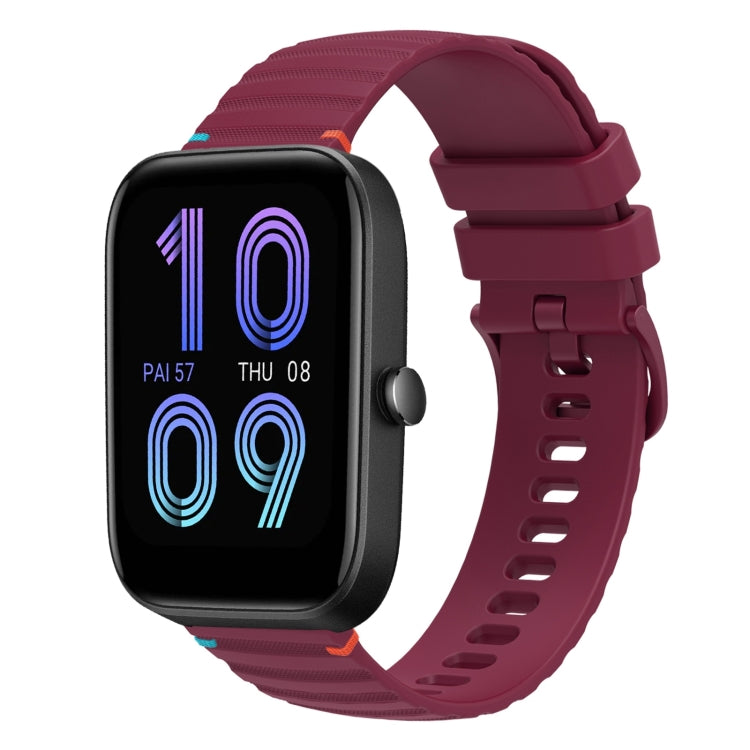 Correa de Silicona Amazfit Bip 3 Pro 20mm con Puntadas Onduladas y Puntos (Rojo Vino)