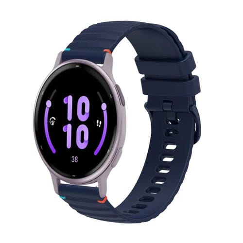 Correa de Silicona para Reloj Garmin Active 5 20mm (Azul Marino) con Puntadas Onduladas y Puntos