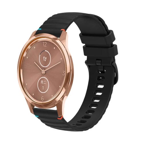Correa de Silicona para Reloj Garmin Vivomove Luxe 20mm (Negra) con Puntadas Onduladas y Puntos