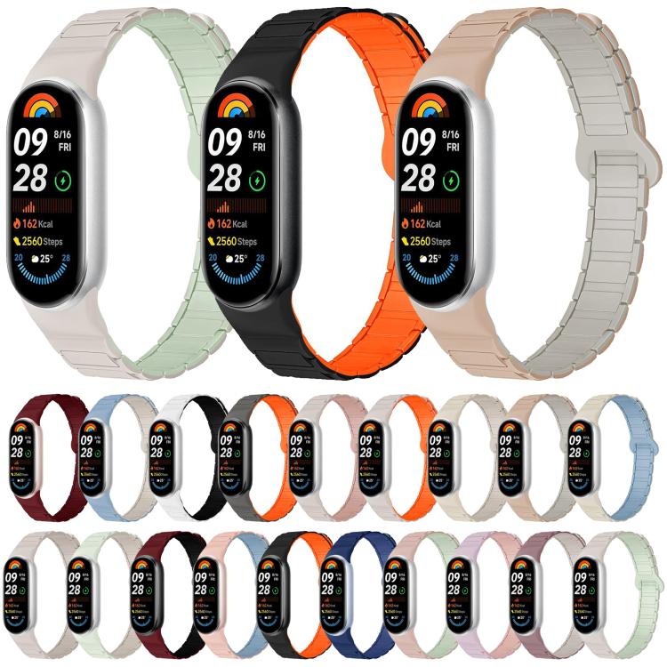Correa de silicona magnética de tres cuentas para Xiaomi Smart Band 10/9/8 (naranja estrella)
