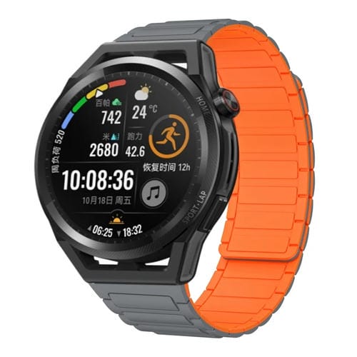 Correa de Silicona Magnética en Forma de I para Huawei Watch GT Runner 22mm (Gris y Naranja)