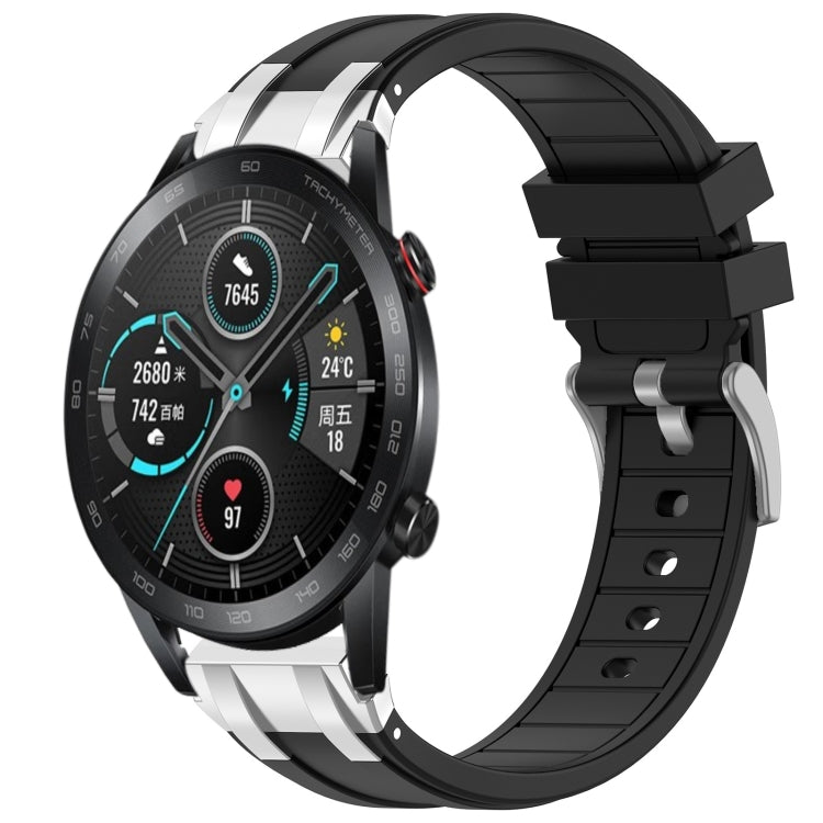 Correa silicona para Reloj Honor Magic Watch 2 42mm 20mm hebilla plateada liberación rápida (Negra)
