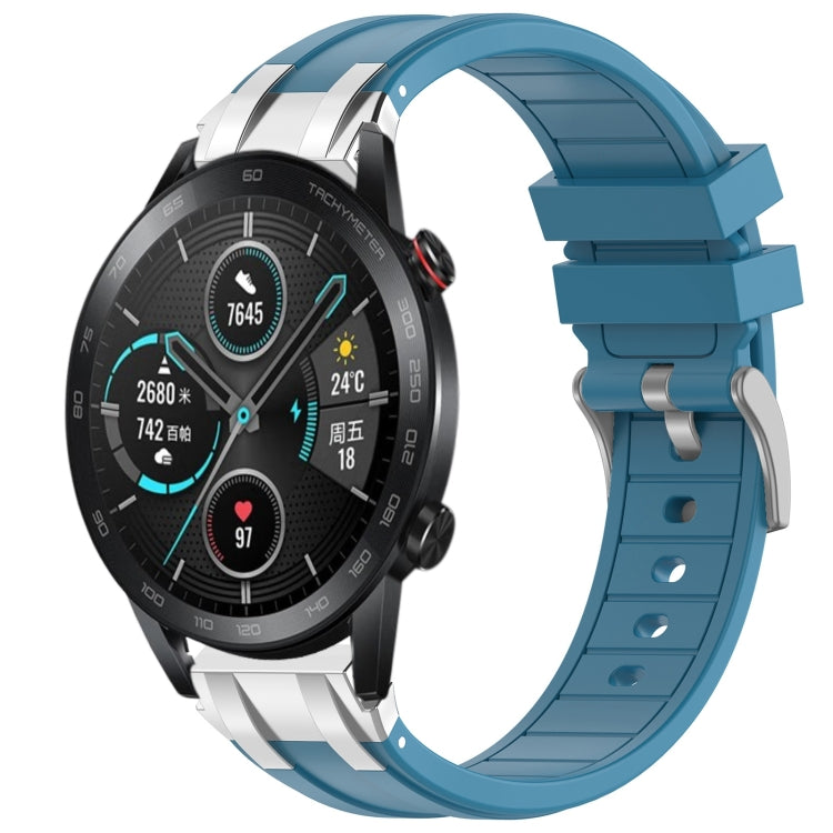 Correa de Silicona para Reloj Honor Magic Watch 2 46mm 22mm con Hebilla Plateada (Azul Marino)