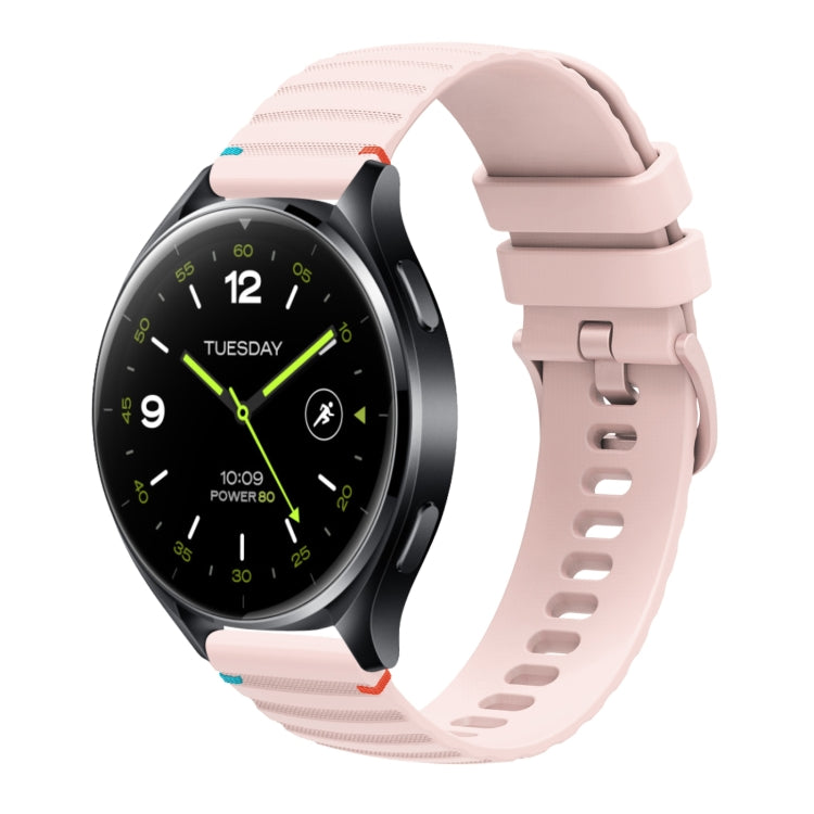 Correa de silicona para reloj Xiaomi Watch 2 de 22 mm con puntadas onduladas y puntos (rosa)